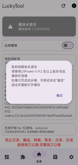 1、使用前需确保手机已Root,安装LSPosed框架并激活,再完成LuckyTool安装;